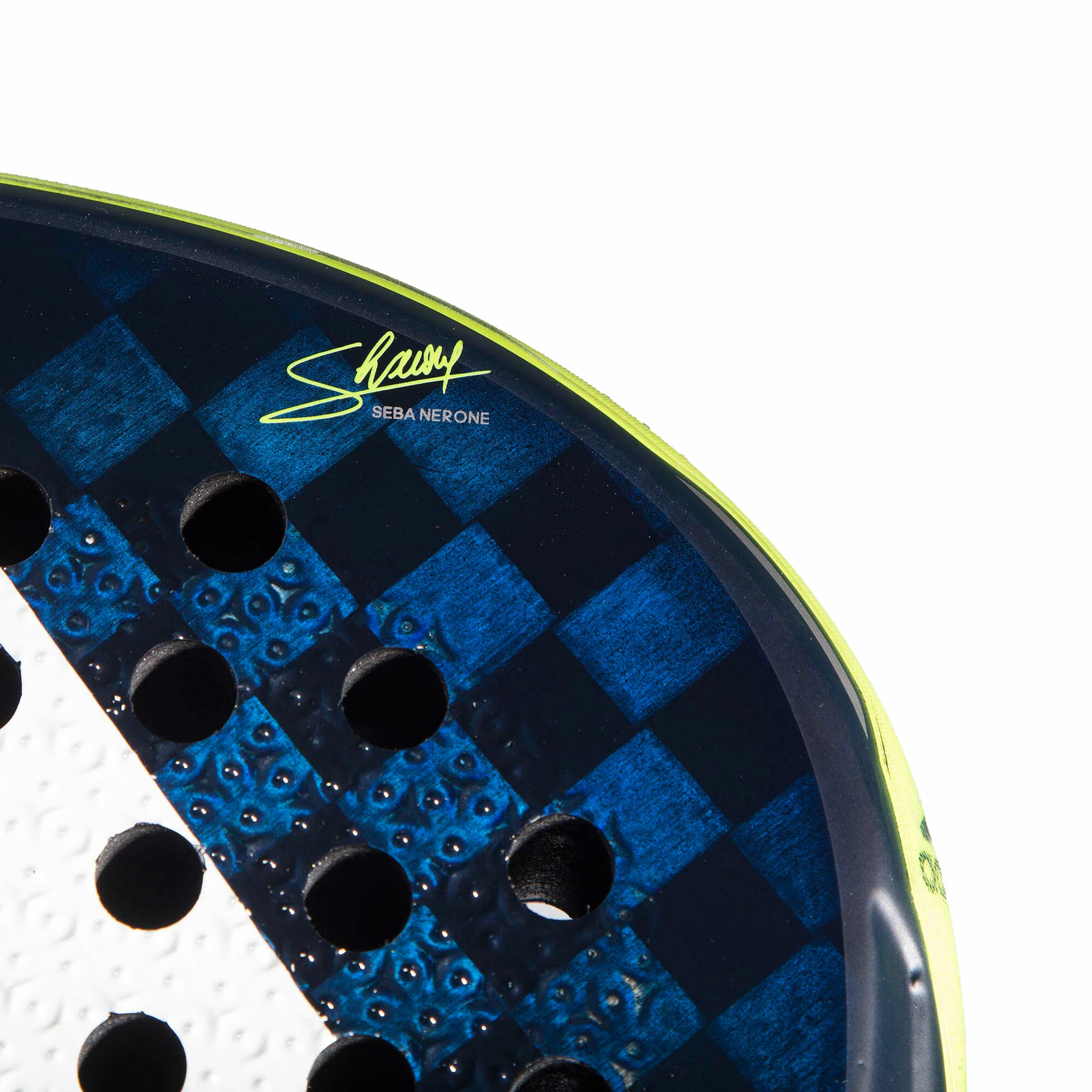 The Adipower 3.1 is the racket that Seba Nerone will play during 2021. With a diamond shape, it stands out for being the most powerful racket from the Adidas collection. It is designed to get the most out of power hits. It is a racket with excellent manageability thanks to the weight, geometry and materials used, optimal comfort in all hits and unlimited power thanks to the aluminized carbon fiber on the surface and the High Memory EVA rubber.