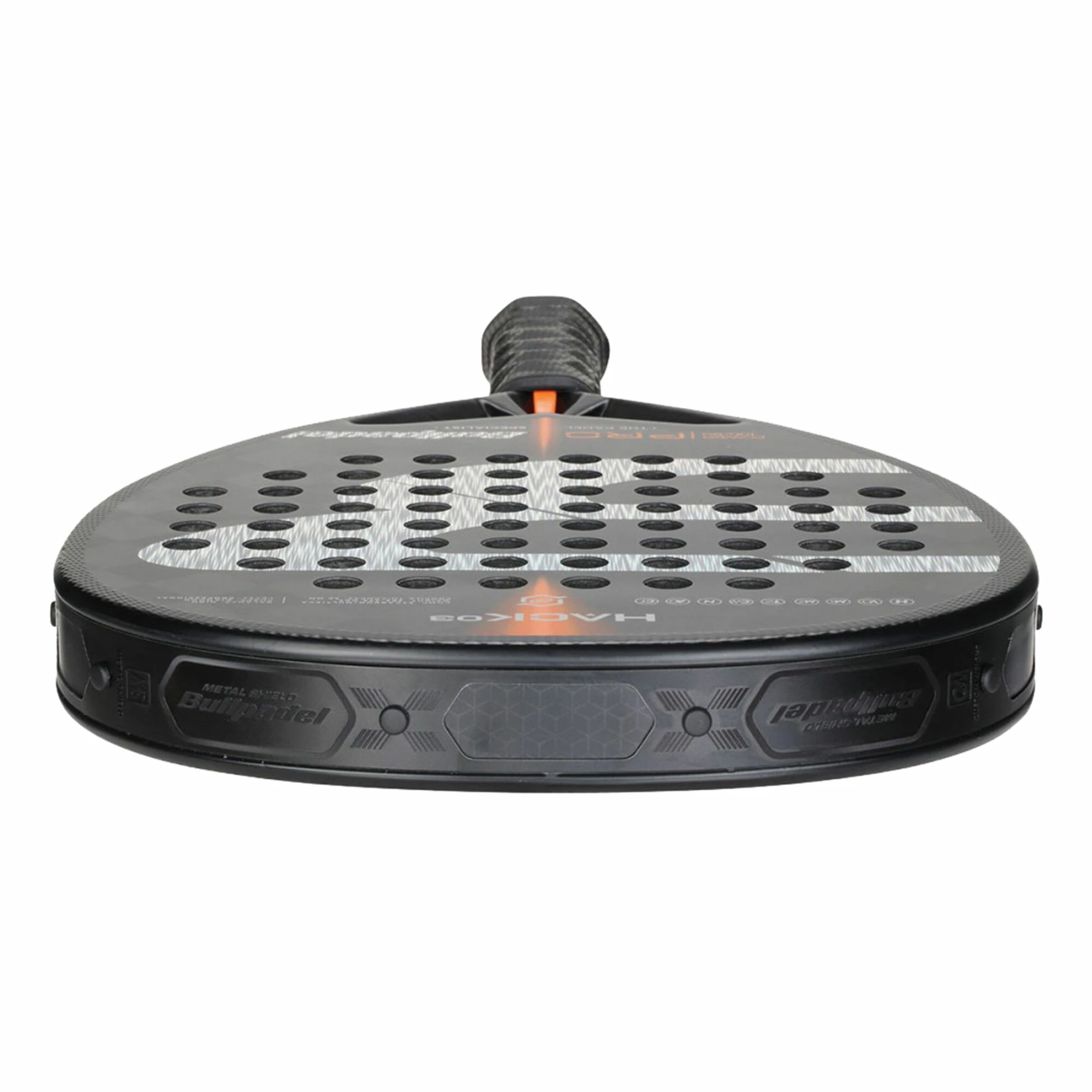 The Hack 03 racket is a teardrop-shaped racket, with maximum power and high performance. It is made up of Tricarbon surfaces, MultiEVA rubber and 100% carbon fiber frame. This composition of materials endows it with great performance, power, resistance and durability. In addition, it has the Mastershield protector that adapts to the Customweight weight plate system allowing you to modify the balance of the racket according to the needs of each player. It has the Vibradrive system for the absorption of vibrations and the Hack heart with the Airchannel system and nerves on the side of the racket frame. In addition, it also incorporates the Hesacore grip, which reduces vibrations and the probability of injury.