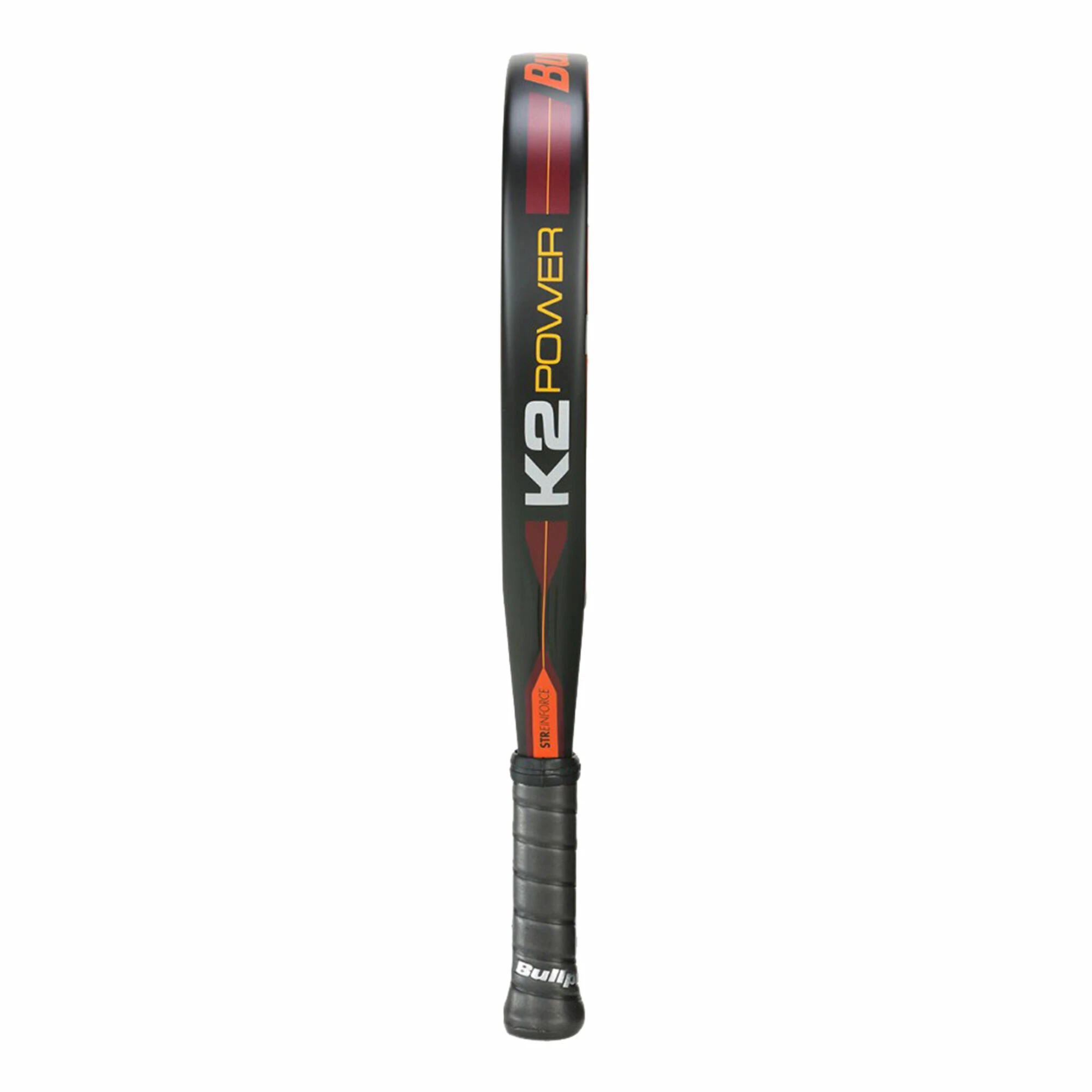 The K2 Power is a very powerful diamond-shaped racket that has the new STReinforce system on the side of the frame with the aim of increasing rigidity and reducing the weight of the racket, providing greater control. The frame also incorporates the three-dimensional Curvedge design that offers less air resistance providing maximum control, manageability and speed. The racket’s surface it is composed of Polyglass fiberglass, the SoftEVA rubber core and the 100% carbon fiber frame.
