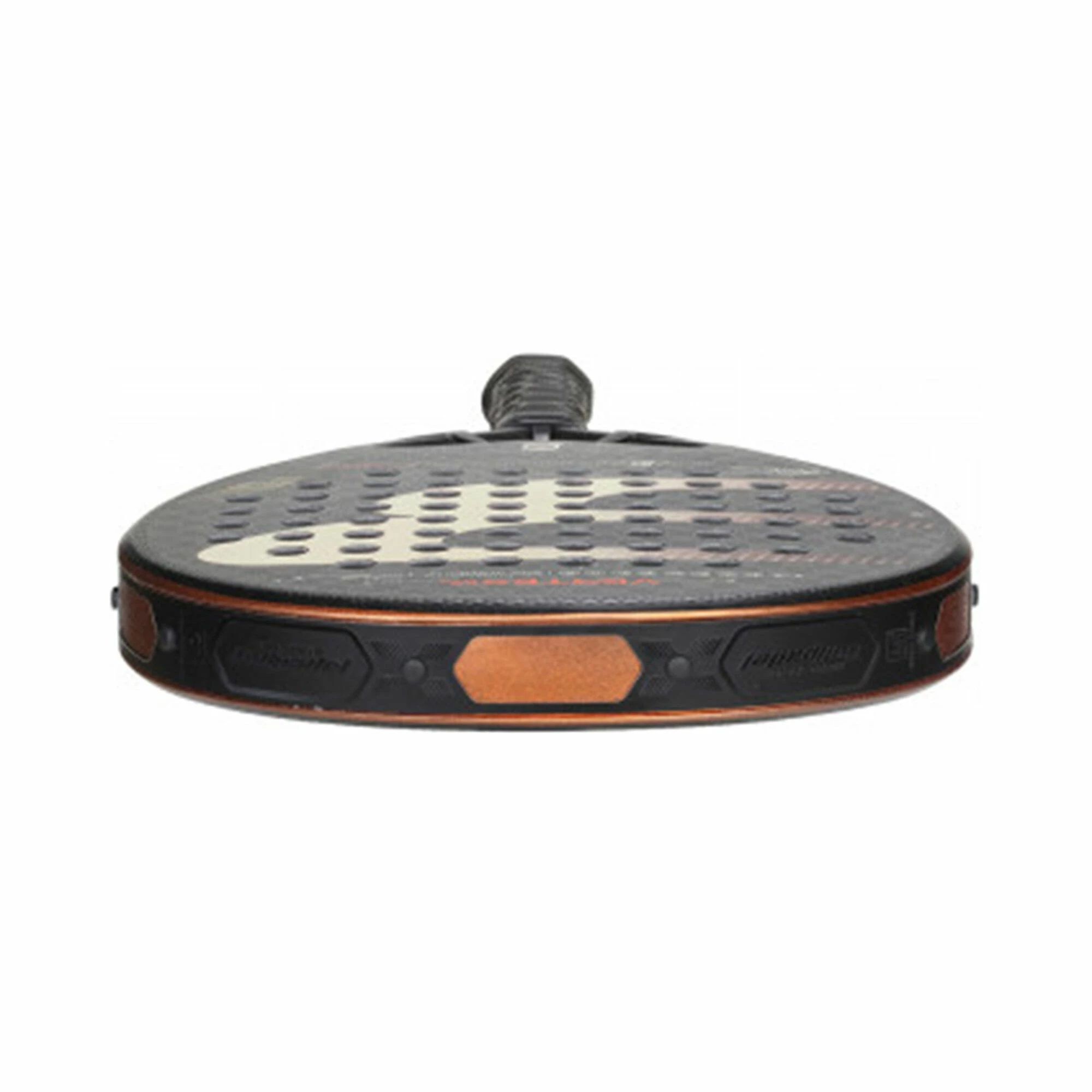 The Vertex03 is a diamond-shaped racket with maximum power that develops high performance with a rough Topspin surface for a better ball spin. The Vertex03 is a diamond-shaped with maximum power high performance raket with a “Topspin” rough for better ball spin. It is made up of 12K carbon surfaces, MultiEVA rubber inner core and 100% carbon frame. In addition, it has the Mastershield protector that adapts to the Customweight weight plate system, allowing you to modify the balance of the racket according to the needs of each player. It has the Vibradrive system for the absorption of vibrations and the Vertex heart with the Airchannel system and nerves on the side of the racket frame. In addition, it also incorporates the Hesacore grip, which reduces vibrations and the probability of injury.