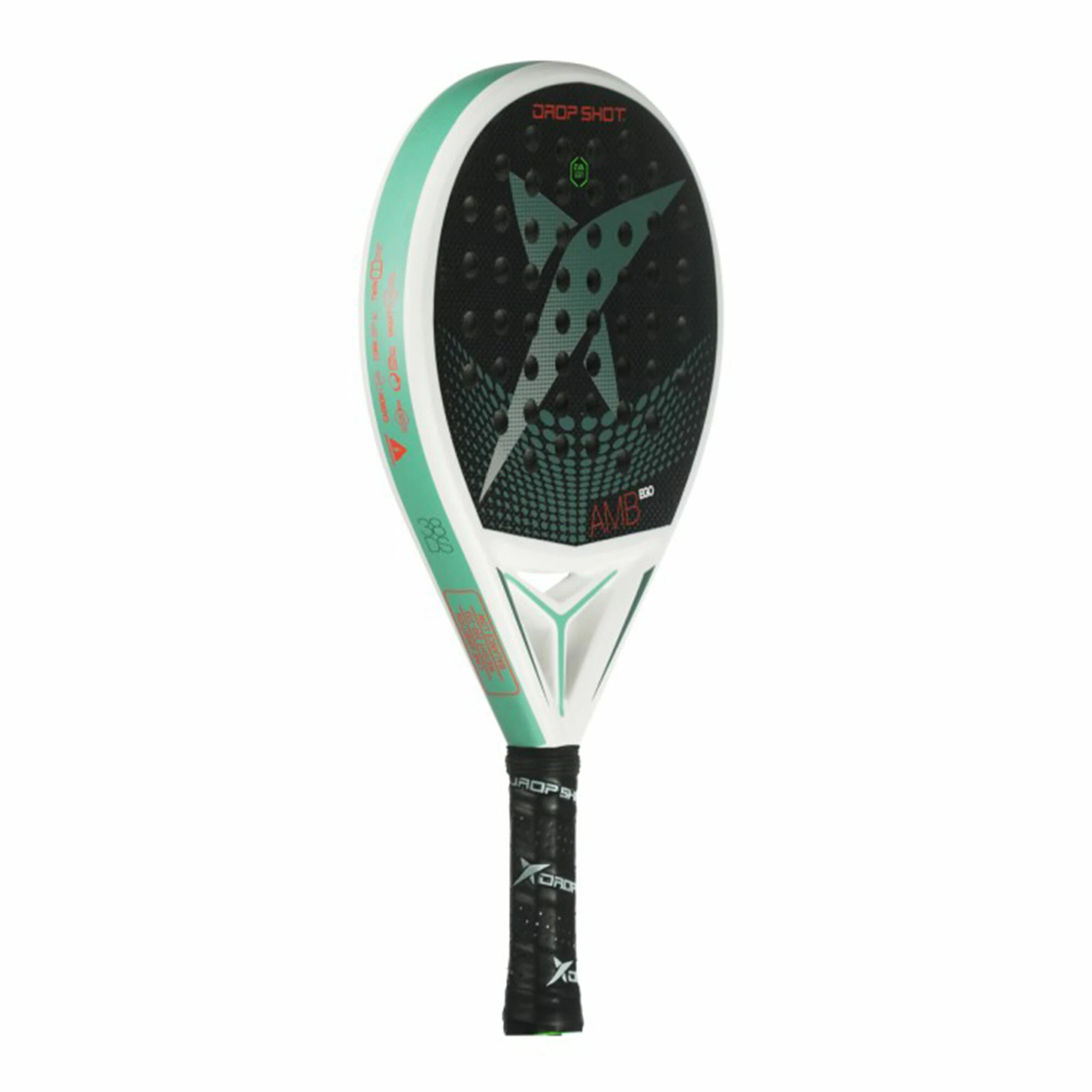 – Rubber: Eva soft. Rubber with great elasticity and lightness, which provides greater ball output and a wider sweet spot with greater comfort when playing. Drop Shot rackets with Eva Soft rubber has great vibration absorption.