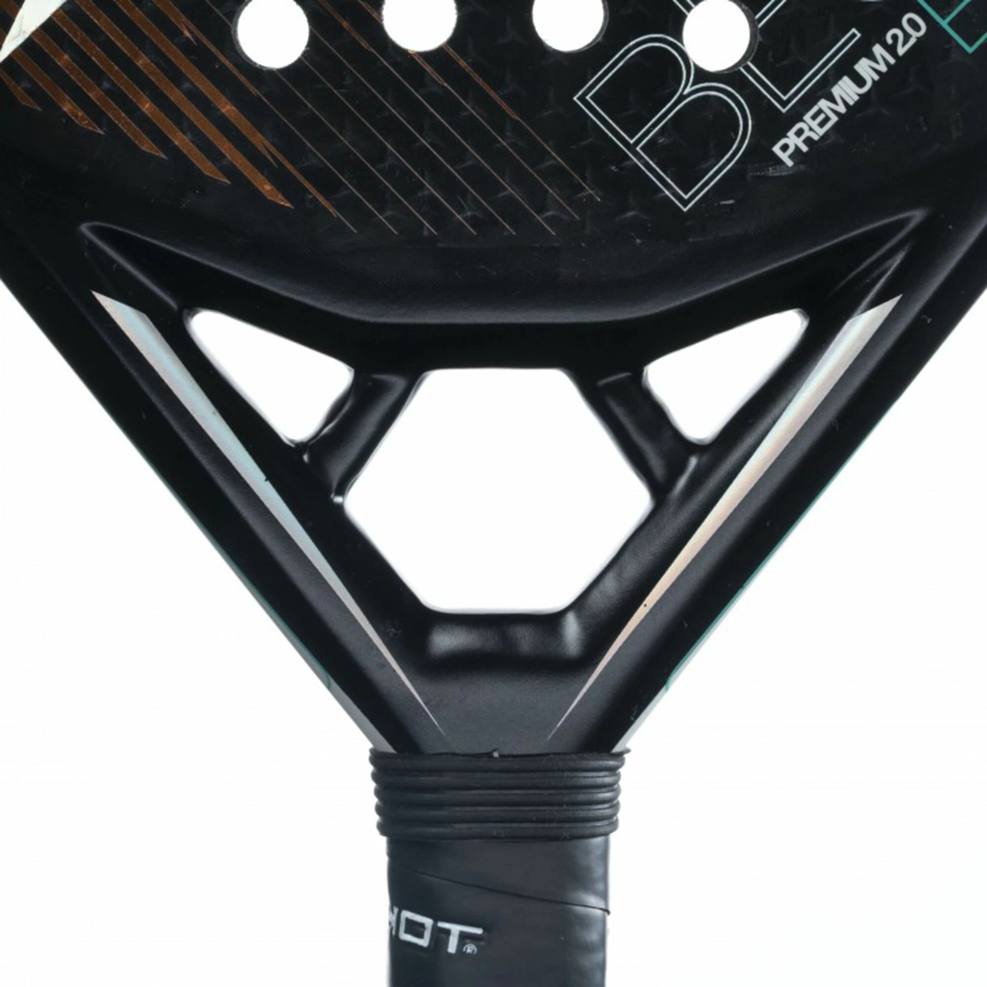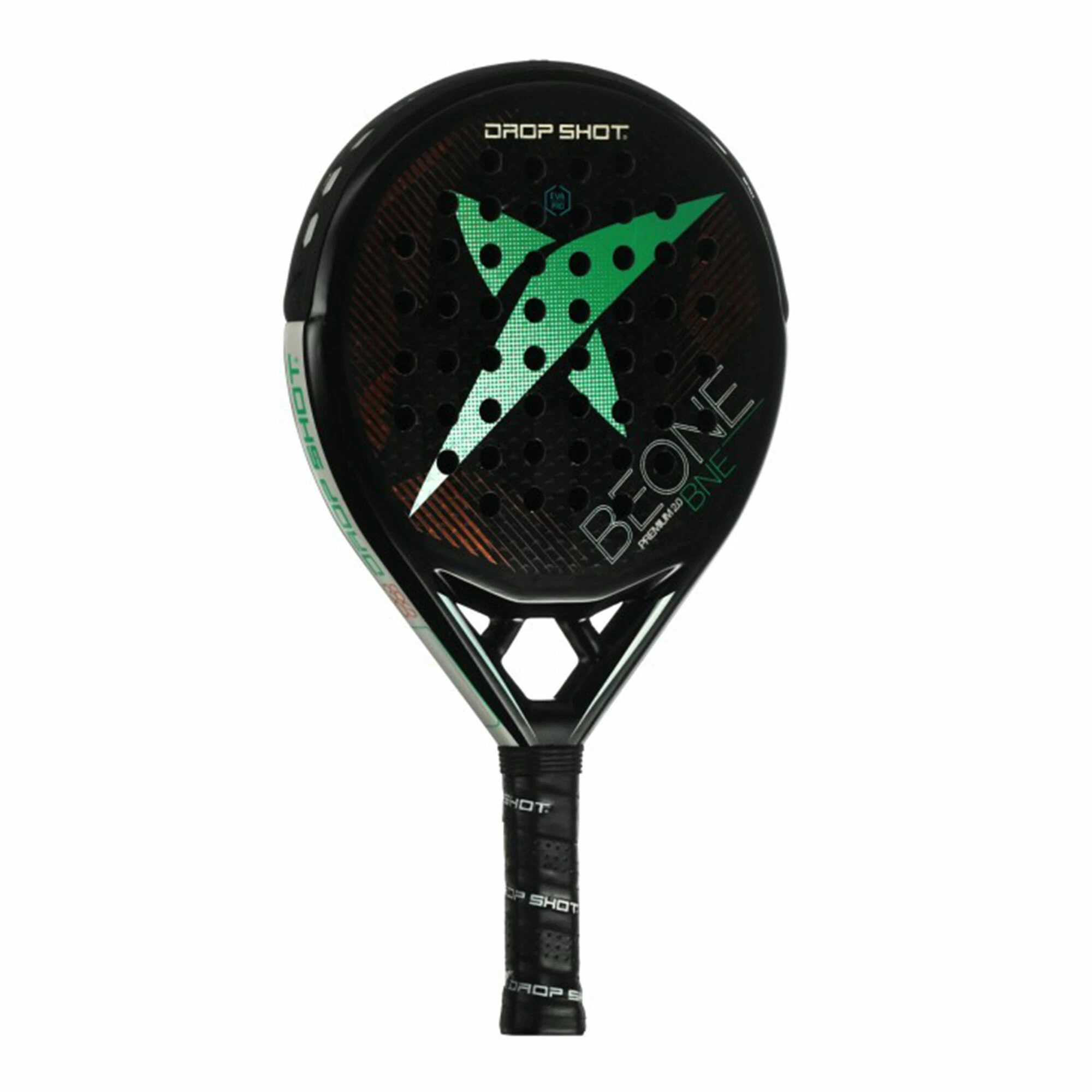 The Drop Shot Premium 2.0 is a round-shaped racket composed by materials and technologies developed together with the legend Juan Martin Diaz. A select and distinguished padel racket that makes a difference on and off the court. The racket has a round oversize format that enhances the hitting of the ball, and with Rectangular Carbon that, together with the Eva Pro, achieves a superior result in terms of control and precision.