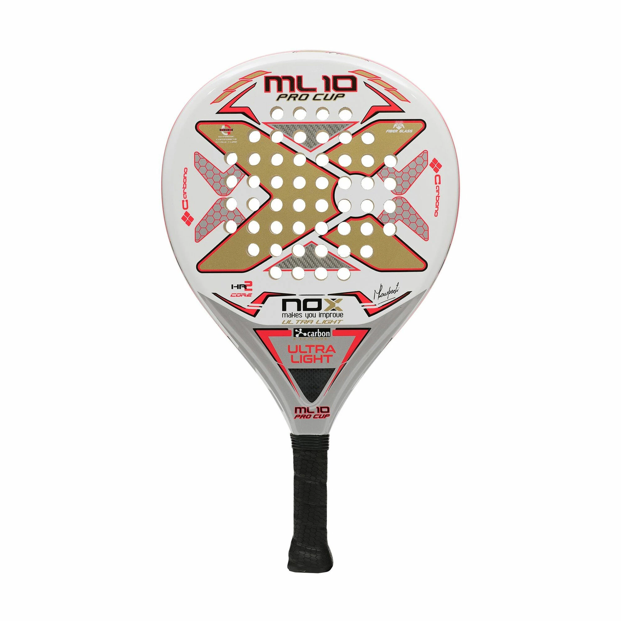The ML10 Pro Cup Ultra Light is a racket for junior players who want to play with a racket that offers a great balance between power and control and the regular size but with a handle adapted to their hand size. This padel racket stands out for its great performance, power and solidity. It is composed of ultra-light materials to reach weights between 290-315 grams.
