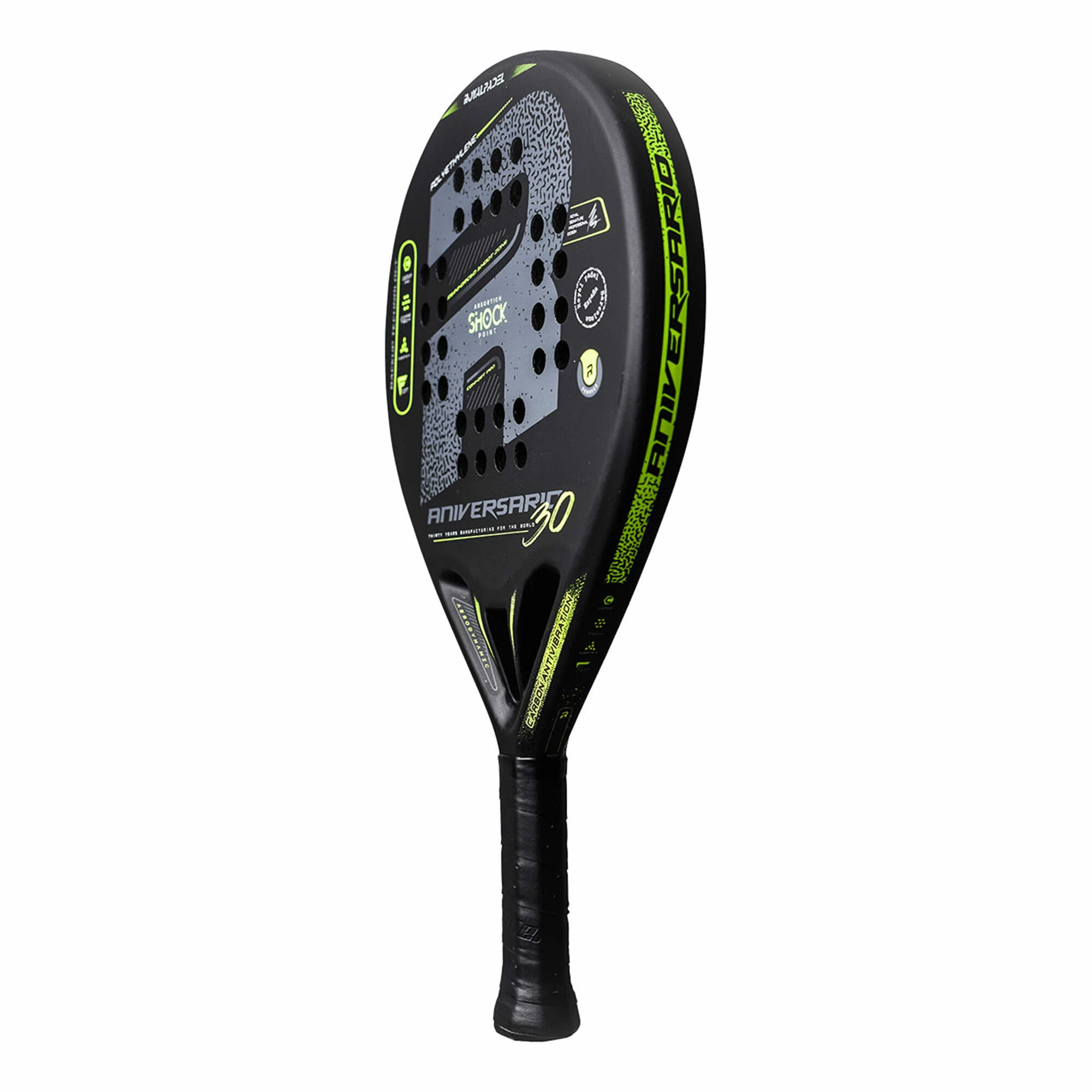 The 31 Aniversario is a round-shaped, low-balanced racket that offers a magnificent game of control. The racket’s frame has the “Parante twin” technological system that reduces vibrations to prevent injuries to the elbows. The core of the racket is made of polyethylene that offers a perfect soft touch for a control game. In the frame, the racket is reinforced by carbon fiber, as in the heart, achieving greater resistance. With the surfaces made of 0.5mm fibertech fiberglass, the racket has great flexibility and durability.