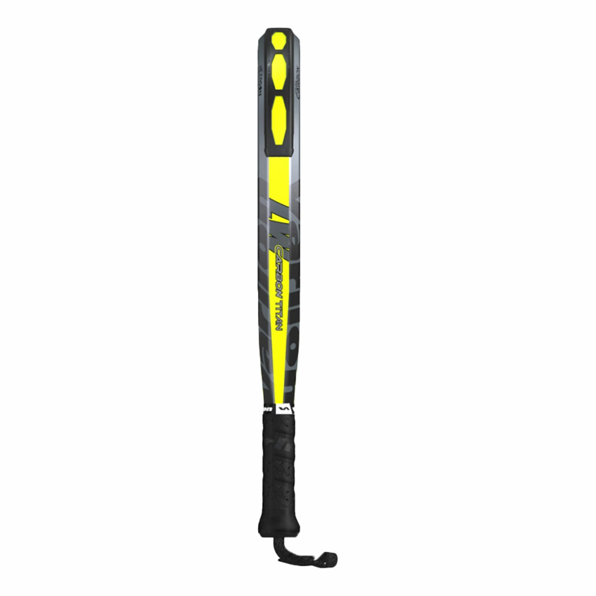 The LW Carbon Titan is a round-shaped, low-balanced racket ideal for players who want to be in control of the game. It is composed of Hypersoft rubber of medium hardness, carbon fiber frame, and fiberglass and titanium on the surfaces that provide elasticity and resistance.