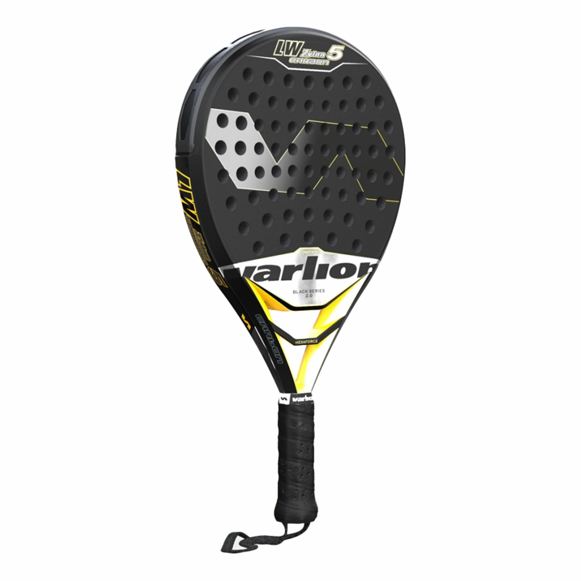 The LW Zylon Carbon 5 Black is a low-balance teardrop-shaped racket designed for advanced and expert players who like soft rackets. It is composed with a carbon and fiberglass frame, medium hardness EVA Hypersoft rubber and fiberglass surfaces with titanium dioxide that provides maximum elasticity and resistance.