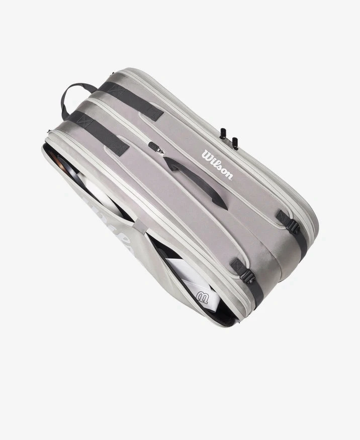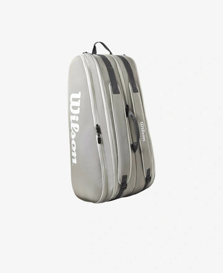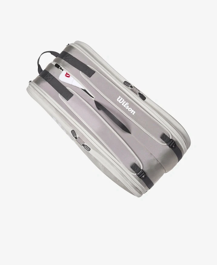 Featuring a fashionable stone color, Wilson’s Tour 12 Pack has two separate zip compartments to carry up to 12 rackets and apparel. Extra zippered pockets provide space for shoes, accessories, and other personal items, while the padded backpack straps make carrying easy and comfortable. Includes a webbing loop for hanging.