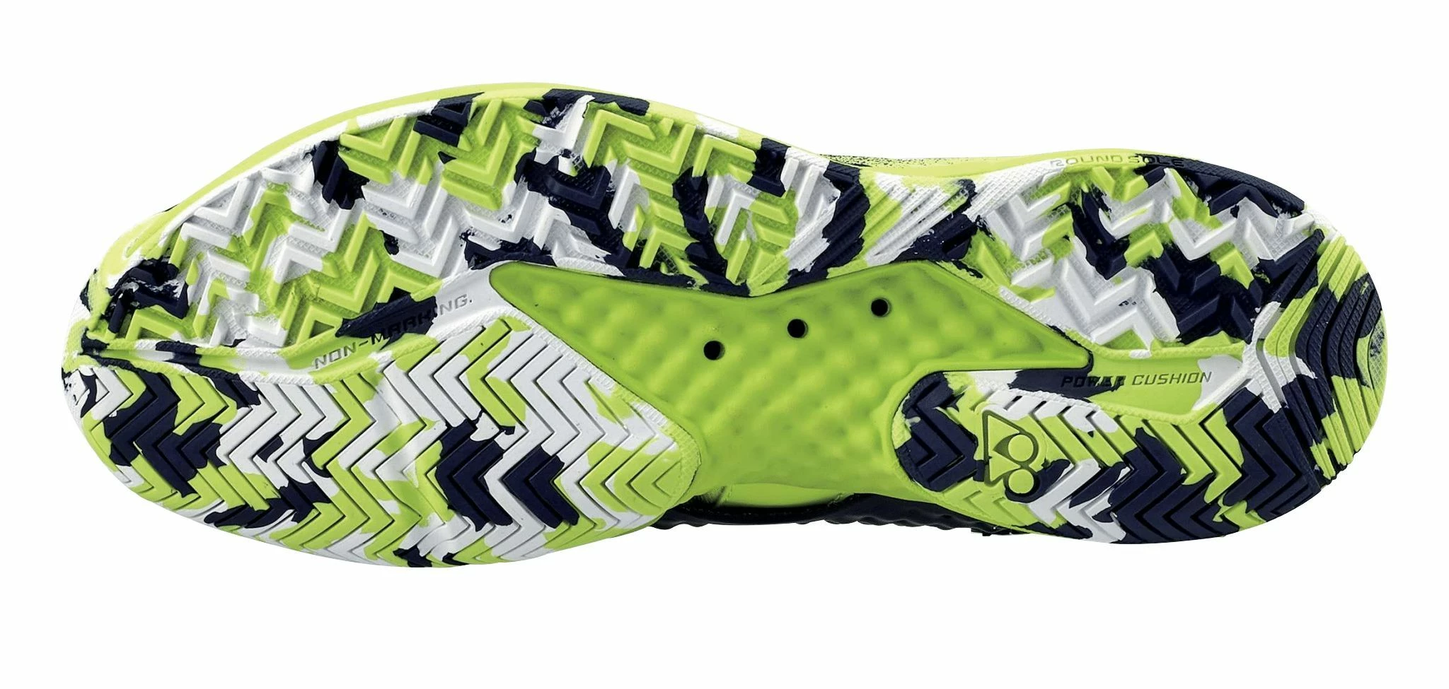 The Yonex FusionRev 4 is the speed demon of the Yonex footwear family. If you are looking for a shoe to support your quick footwork and hard cuts, the FusionRev 4 from Yonex is for you. The monocoque, or booty, design combined with the Fusion Wing and Inner Skin components, enhances transition from one direction to another while also providing a snug fit. The shoe moves with your foot for quicker acceleration and superior agility. The combination of Power Cushion+, Feather Bound FOAM, and Toughbrid Light, is effective at protecting your feet from the unforgiving life of hard court tennis. Give your feet what they deserve; give them the gift of Yonex.